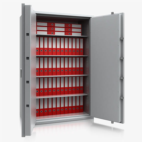 Gwarantują to proponowane przez nas sejfy ze specjalnym systemem uszczelek i wypełnień gwarantujących odporność przeciwogniową S 30 DIS wg Normy EN 1047-1. Sejfy zostały poddane testom przeciwogniowym i uderzeniowym o czasie trwania 1 godz. w temp. do 1090°C.